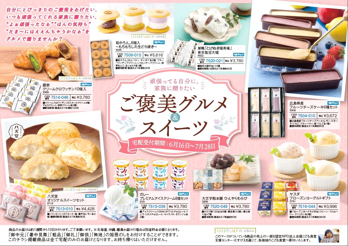 販売促進・集客チラシご褒美グルメ&スイーツ特集の告知・集客チラシ兵庫県たつの市で贈答ギフトの販売をされているギフトパークコーヤマ様より折込チラシ制作のご依頼を頂きました。今回の企画は「ご褒美グ…