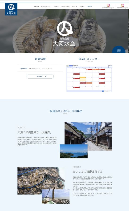 販売促進ホームページ(LPタイプ)商品説明・商品販売用かねてより制作進行中でした兵庫県赤穂市で「坂越かき」を養殖・販売を行う大河水産様のホームページが完成しました。1年で大きくてプリプリの牡蠣に育つ…