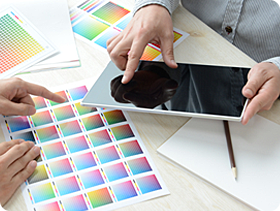 制作着手時に予定した印刷仕様について、用紙・加工・部数など、ご要望の有無を再確認します。特に用紙の選択に関しては、製品やサービスのイメージを表現するために重要なツールとなりますので、念入りに打ち合わせを行います。色校正にて最終確認を頂き、最終校了を経て印刷へと進みます。印刷後、必要に応じて表面加工、折り加工、製本加工などを行い、検品後お客様に納品いたします。