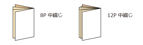 中綴じとはホチキスや針金を使った製本方法で、紙を2つ折りにした中央部分をホチキスや針金を使って綴じます。レイアウトの自由度も高く、ページ数の少ない冊子の作成におすすめです。開きやすく扱いやすいことから人気があり、パンフレットを作成する際には最もスタンダードな製本方法です。